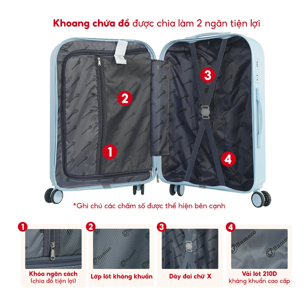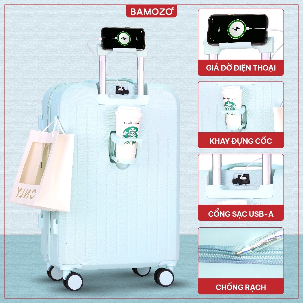 - Độ bền vượt trội: Sử dụng chất liệu cao cấp, vali kéo của Bamozo có khả năng chống va đập, trầy xước, bảo vệ hành lý của bạn một cách tối đa.